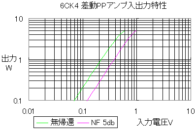 A級PPは、思いの外出力が取れ最大出力は7Wとなりました。差動PPでは最大出力は4.4Wです。