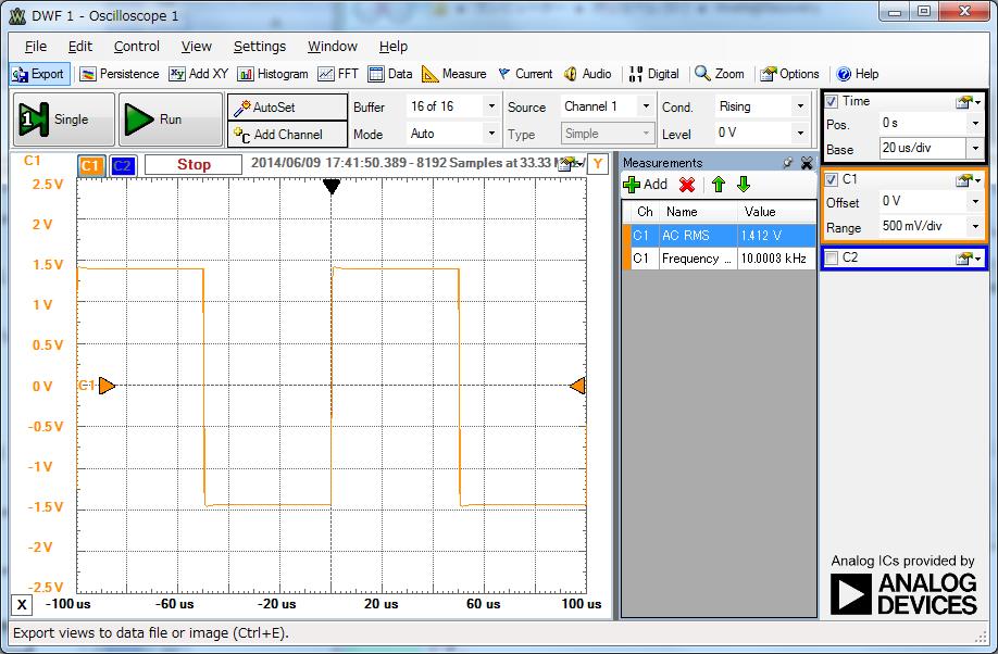 アンプの安定度測定に用いる10KHz方形波の波形も評価しました。