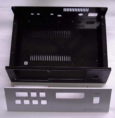 上がシャーシ本体、下がフロントパネルです。外形寸法及びデザインは私のModel2真空管式DAコンバータに揃えてあります。