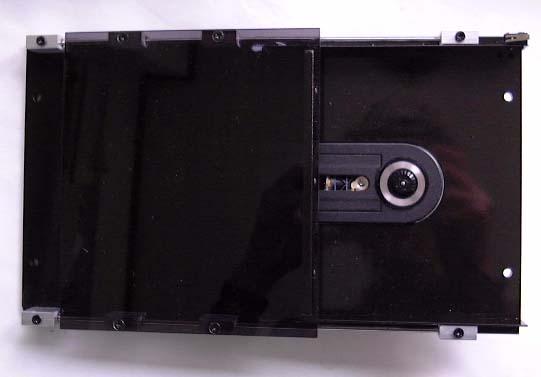 5mm厚鋼板プラットホームにCD-Proモジュール、スライド金具、アクリル製蓋を取りつけた状態です。アクリル蓋は左右にスライドします。