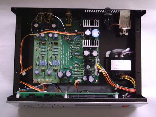 下の写真はシャーシ本体に主基板、操作基板、電源トランス、その他小物部品を取りつけた状態です。この上に上の写真の状態に組み上げたプラットホームを載せCD-Proモジュールへのコネクタを繋ぎます。