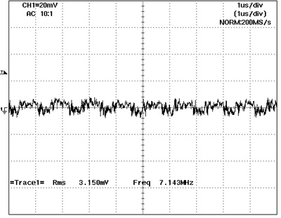 左は横軸1目盛 1usec で残留スイッチング雑音の観測結果です。スイッチング雑音量は3.15mVです。
