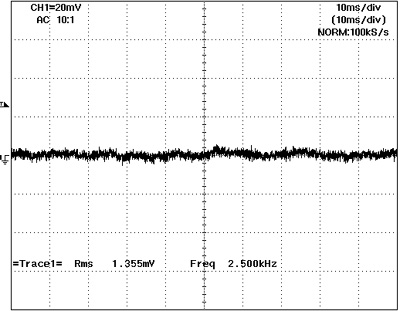 右は横軸1目盛 1msec で残留rリップルの観測結果です。リップル量は1.355mVです。