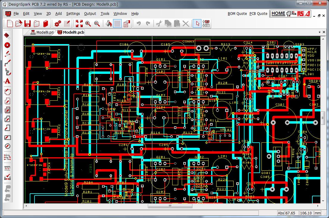 プリント基板の設計(作図)にはRSコンポーネンツ社が無償配布しているプリント基板設計アプリ DesignSparkを使用しました。