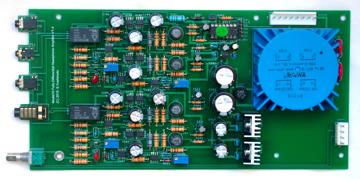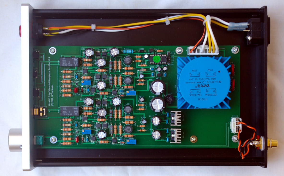 筺体に入力端子、電源ソケット、電源スイッチ、電源トランス、基板を取り付けて配線を行います。