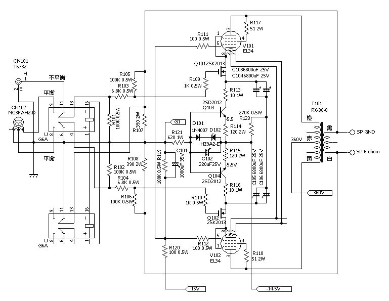 単段にて位相反転と高出力増幅と自動プレート電流調整機能の解説は