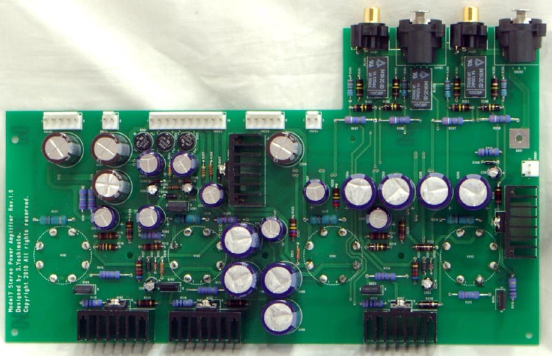 1枚の大きなプリント基板に4本の出力管を含むほぼ全ての回路部品が搭載されます。