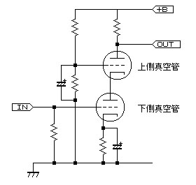 そして、高い内部抵抗と耐圧、許容損失を求められる上側グリッド接地真空管にはEL34、KT88等の5極出力管又はビーム出力管を用います。