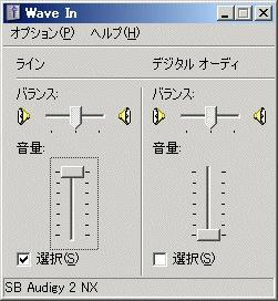 以下入力音量設定ダイアログボックスが現れます。サウンドカードによりダイアログボックスの形式が異なります。
