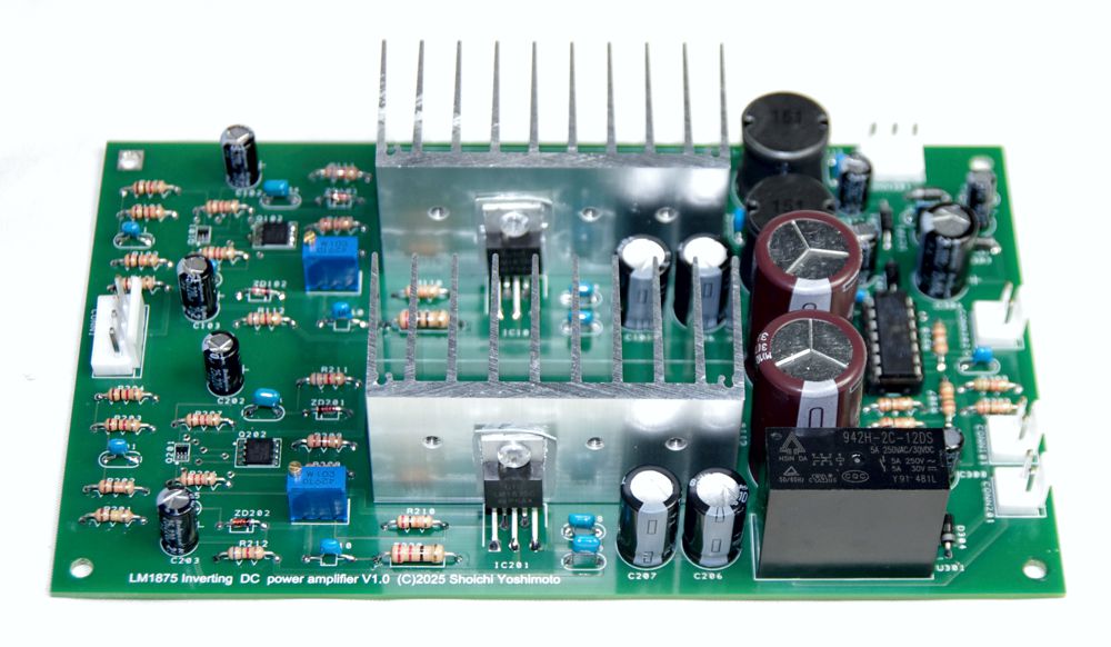 アンプの殆ど全ての部品がプリント基板上に収められています。